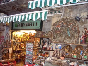 Het is moeilijk te beschrijven met woorden of foto’s de veelheid aan kleurrijke winkels en kraampjes, waar je overdonderd wordt door de grote verscheidenheid van het aanbod. Hier vindt u werkelijk alles voor uw kerststal, in alle maten en prijzen. Naast de echte kunst, vruchten van het werk van gezinnen die deze ambachten sinds generaties uitoefenen, bestaat er ook de echte kitsch die duiden op de ironie en fantasie van Napels. Het beeldje, de karikatuur van Vips of politici is nu uitgegroeid tot een van de klassiekers op deze markt. Sommige ambachtslieden hebben zich hierin gespecialiseerd, de karikatuur hangt vaak samen met een gebeurtenis die hun bekend maakte. Enkele voorbeelden zijn Maradona met zijn bal in zijn gouden jaren in Napels of de rechter Di Pietro, die een schare politici heeft veroordeeld tot het plegen van corruptie. Dit jaar schijnt Berlusconi weer een geliefd karikatuur te zijn samen met een van zijn jonge minnaressen.