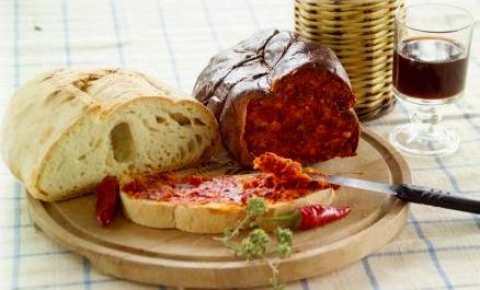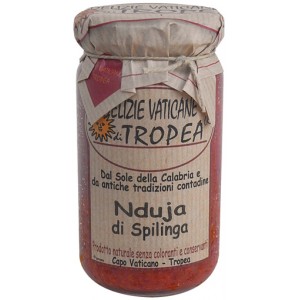 Een echt typische Calabrese specialiteit is de Nduja di Spilinga. Ik vind het enigszins te vergelijken met onze filet Americain. Het wordt geproduceerd in heel Monte Poro, hoewel zijn ‘geboorteplaats’ Spilinga is, vlakbij Capo Vaticano. Het heeft een levendige rode kleur, is romig en goed smeerbaar. Het is een uiterst pikante worst en velen denken dat dit ook zo zijn vitale uitwerkingen kan hebben. Het wordt gemaakt van het vette gedeelte van de varken en heel fijn gemalen met een grote dosis pepers (25/30%), zowel zoete als kruidige, vervolgens wordt deze licht gerookt en vervolgens laten ze het ‘rijpen’ voor een aantal maanden. Het is heerlijk op brood of op een bruscetta of het wordt gebruikt om smaak aan sauzen te geven.