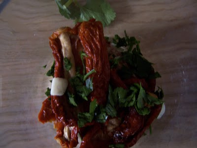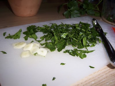 Je hebt nodig: tomaten (gedroogde), witte wijn azijn, peterselie, knoflook (drie of vier tenen) en olijfolie